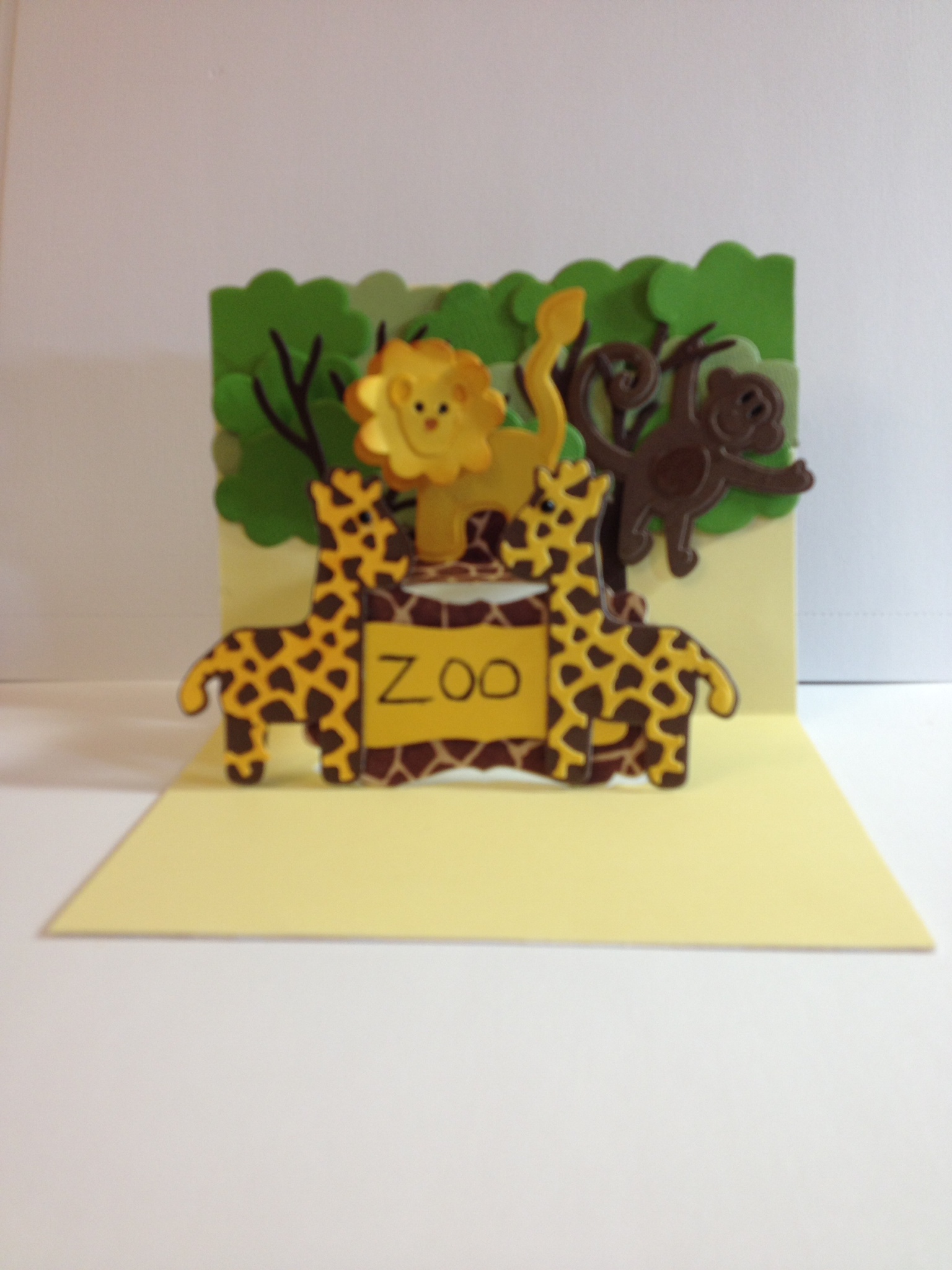 Baby Zoo card is easy and fun to make as a baby shower or congratulations on your baby card. Cardstock: the Paper Studio “Safari” and Stampin Up – Chocolate Chip, Daffodil Delight, Gumball Green and Wild Wasabi; Elizabeth Craft Design Dies – 779 Lucy Lable Pop Up, and 781 All Seasons Tree; Sizzix Thinlits Dies – Lion, Monkey and Giraffe; Copic Markers – Y19 Napoil Yellow and E35 Chamois; Stampin Up Ink – More Mustard and Chocolate Chip; Cuttlebug Embossing Folder – Branches; and Tim Holtz – Distressed Stickles Mustard Seed.