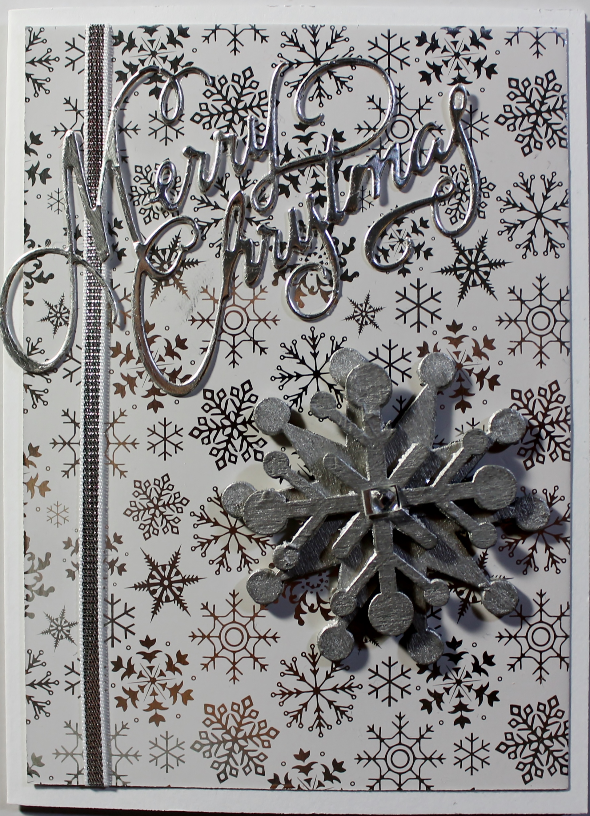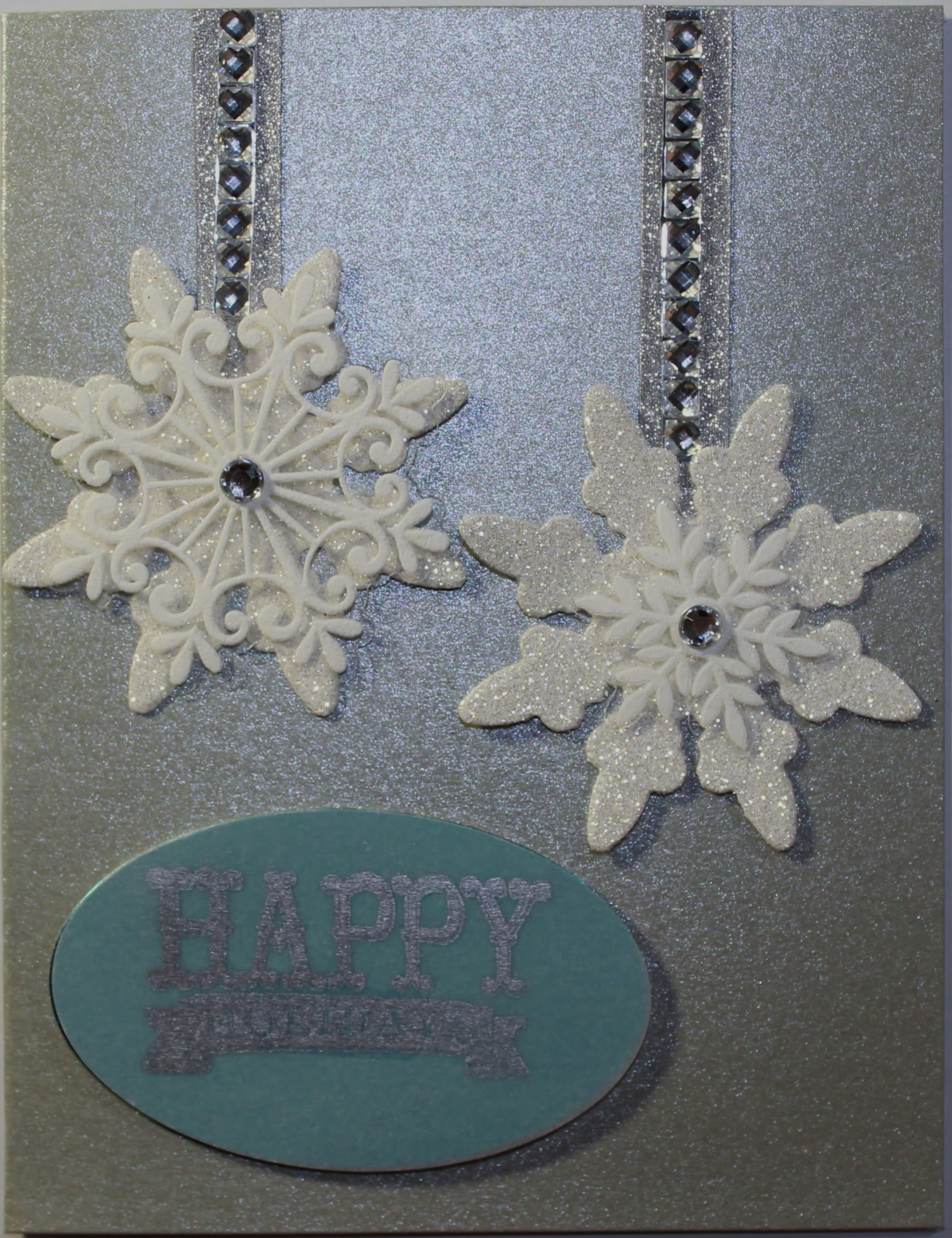 Run light blue large piece through Cuttlebug/Big Shot, using the snowflake embossing folder.