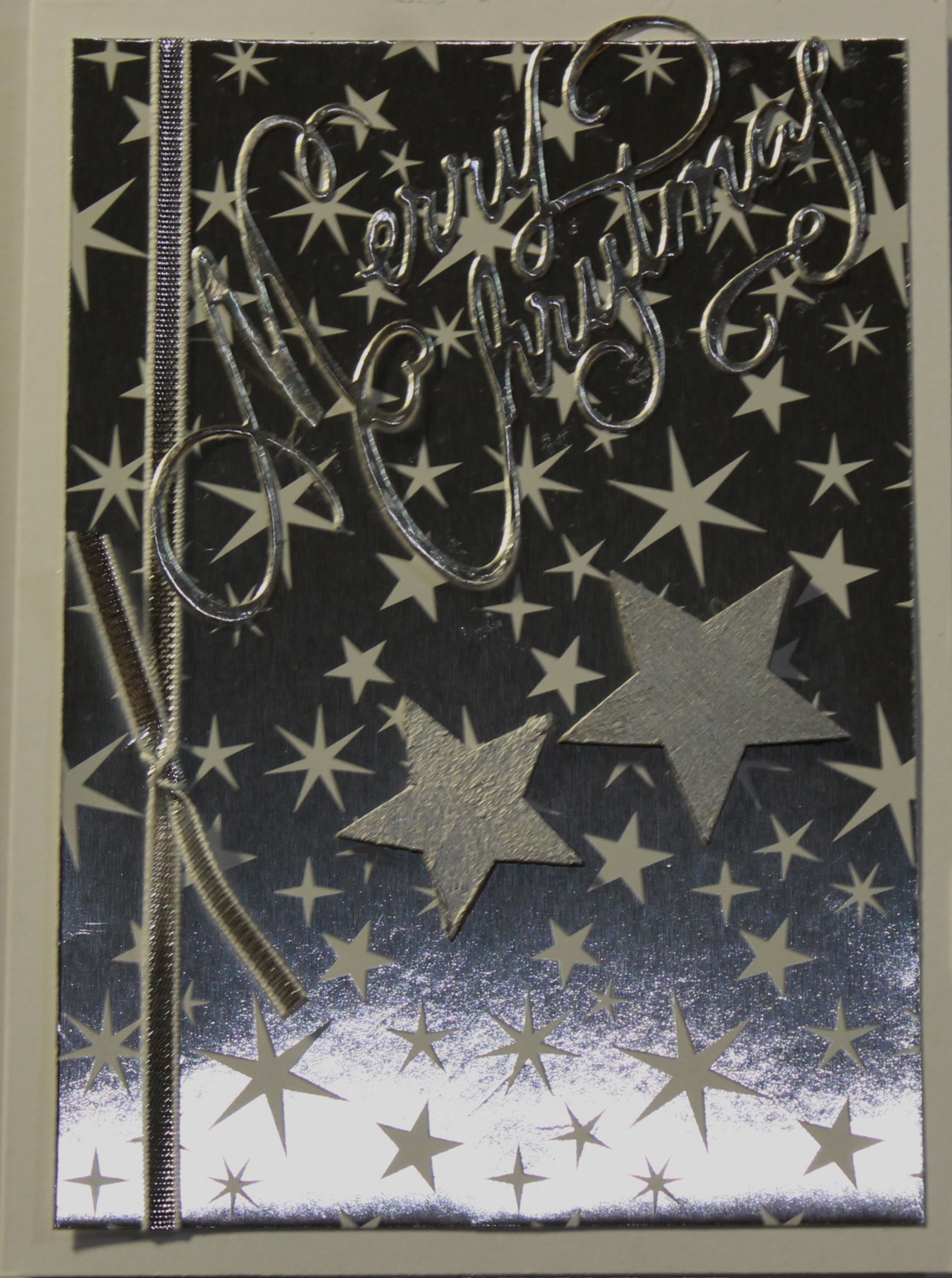 Run grey card stock through die cutter, using large die cut, then the phrase.