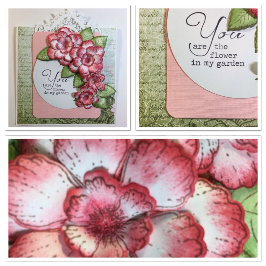 Heartfelt Creations Paper, Botanical Rose Stamp Set and Botanical Wings Die Set. I used Stampin Up Ink Pistachio Pudding, Gumball Green for the leaves. Wisteria Wonder, Perfect Plum and Daffodit Delight on the flowers.