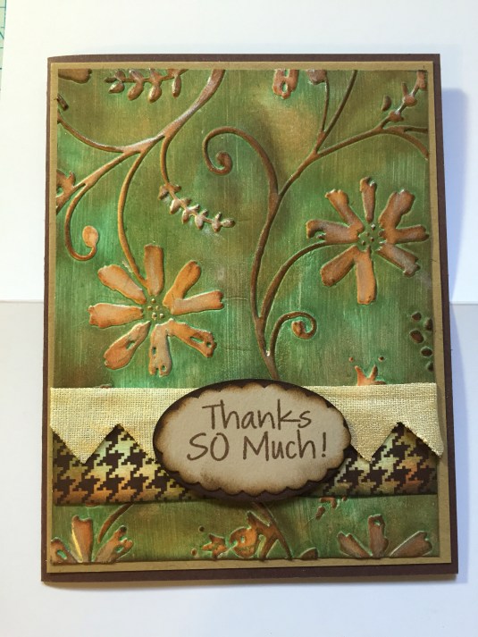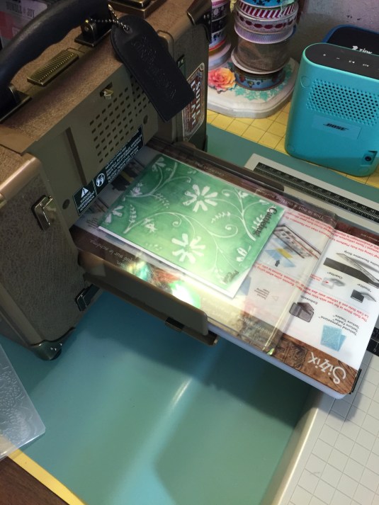 I’m so happy my hubby gave me the Vagabond by Sizzix for Christmas. I love it so much makes my crafting so much easier. This morning I was playing with canvas putting it threw and it came out beautiful and also inks with embossing folders. I can’t wait to do framelits and other dies. Also can run chipboard threw. Here is just a few things I did. And my finish card.