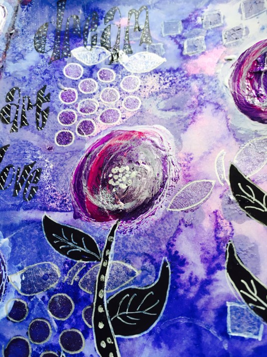 Today I decided to play with Dylusion paints by Dyan Reaveley. And I’m loving the way the paints feels by using my fingers and brushes. The colors are very vibrant and beautiful to work with on canvas or watercolor paper. Looking forward to create more with Dylusion paints.