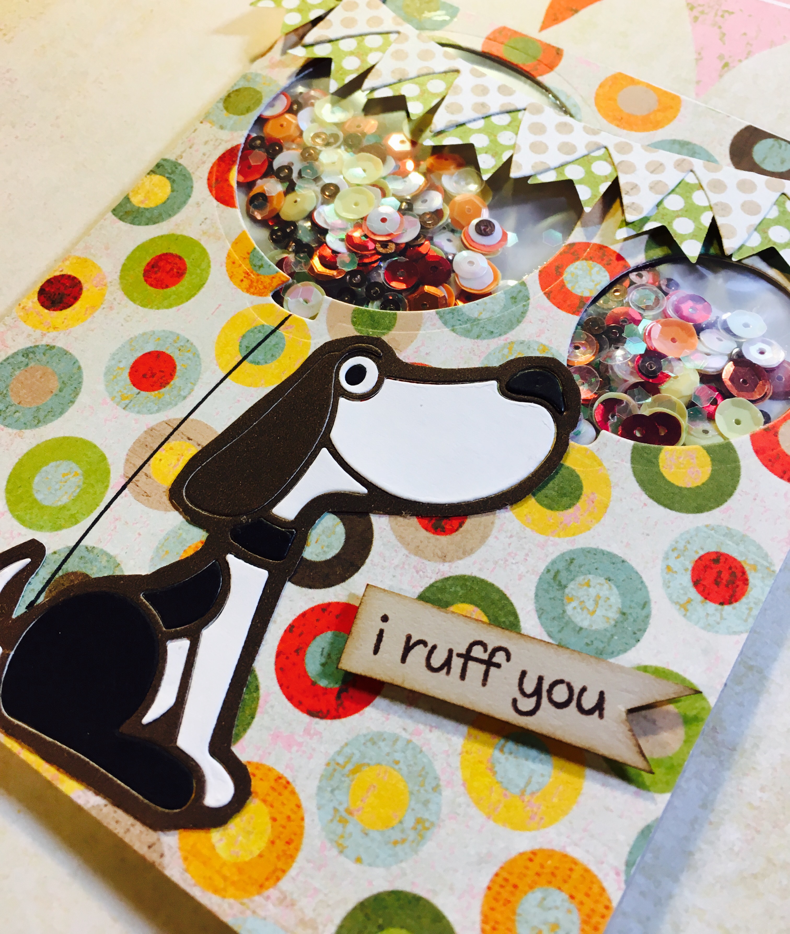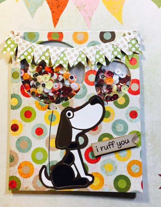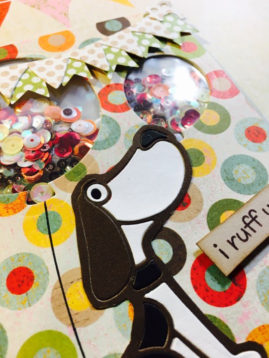 Products I used: Cardstock Basic Grey Shin On…. and Taylored Expressions dies: Pennant Border and Party Banner. Lawn Farm Critters At The Park Stamp set: I ruff you and bone. Dreamweaver Beagle die. And Stamping Up: Celebrate Today for the balloons.