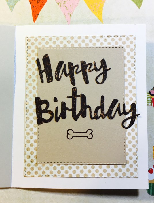 Inside the card I used: Simon Says Stamps die: Painted Happy Birthday and Stitched Rectangle Layer die set.