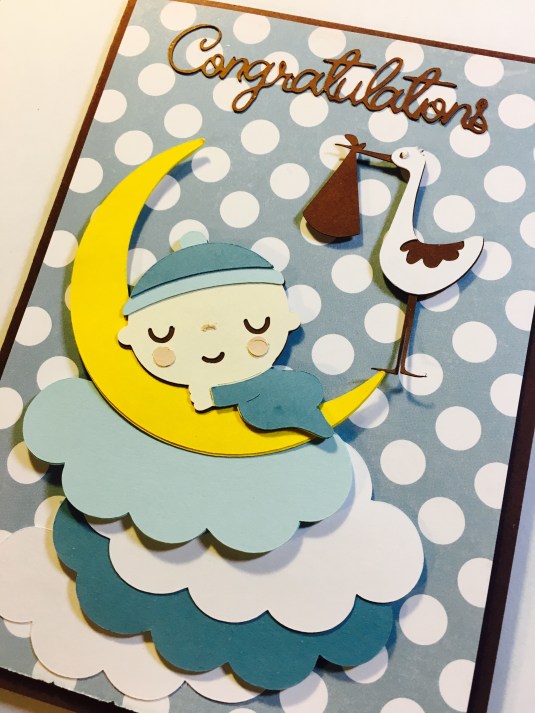 Hello everyone, I am sharing this baby card I made for a sweet friend. I had so much fun making it. I designed it with my new Cricut Explore Air 2 Machine. It's amazing, that I can design everything now on my iPad or iPhone then cut, print and color so many different things. You know me, I'm always thinking out of the box. I love to create many different things.