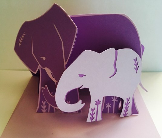 Today I wanted to check out some of the Cricut designs, I found this cute one with elephants. I love the way their trunks hook together when closed. I was thinking about what I could add to this card. But I really love the cuteness of it. Tell me what you think and if you like it give me a thumb up. Have a great day everyone.😊