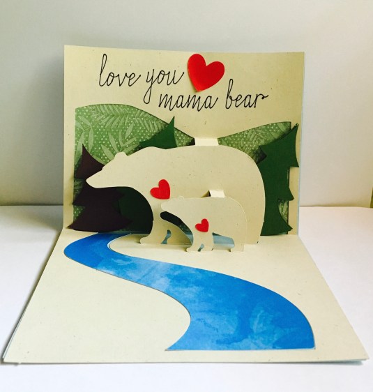 Loving the Design Space App on my IPad and IPhone. Knowing I can go anywhere, design something on my mat and save it for later is too cool. Then come back and add more or less is soooooo awesome. On this pop up card I decided to add trees on the background and watercolor the lake to give it more of a real look. Thank you for checking out my blog.