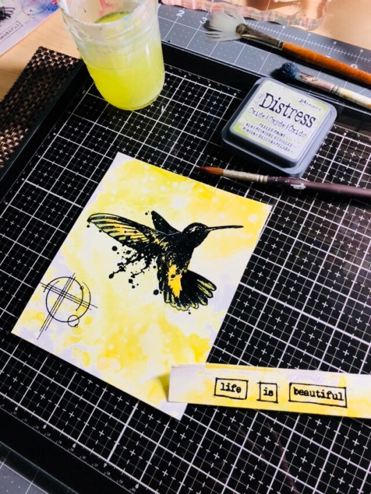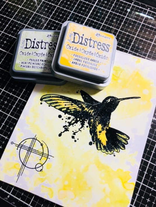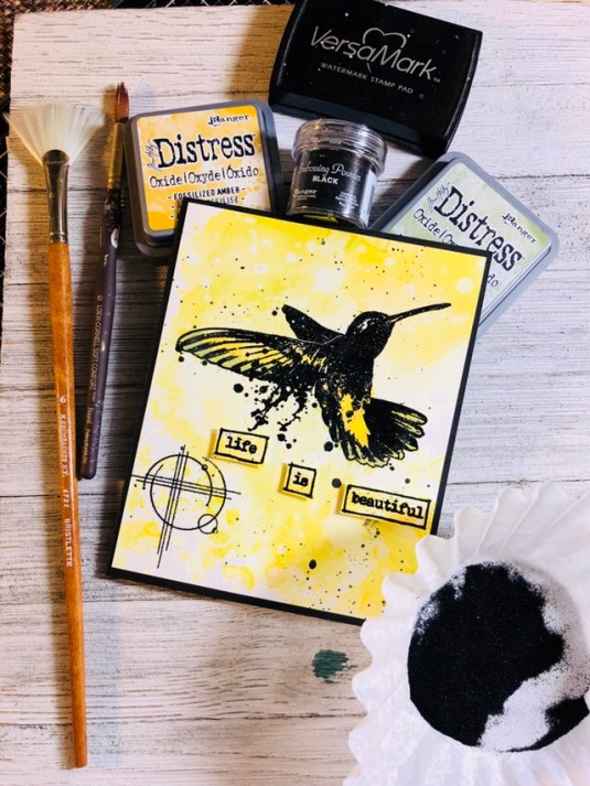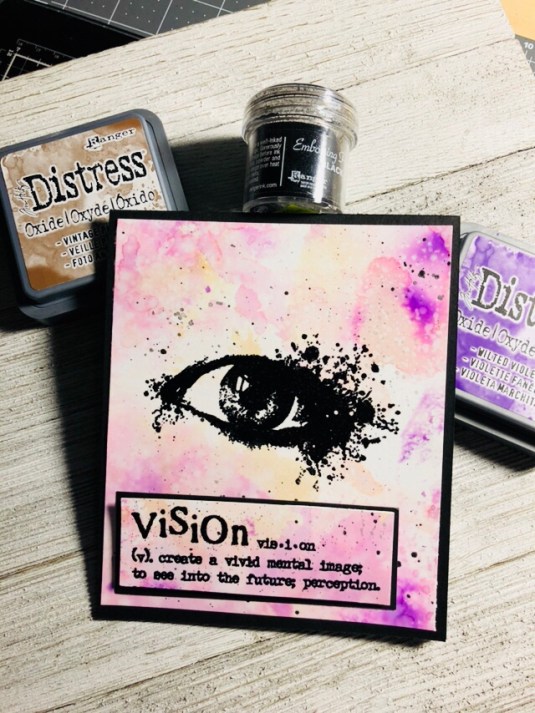 Hey my crafty friends, when you can get two cards done in one day that simple great. The colors I pick for this card is Oxide Vintage Photo, Oxide Wilted Violet and black embossing powder with splash of Dylusion Black Marble paint. The stamp used is called Where Dreams Take You by Visible Image.