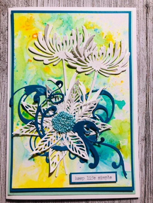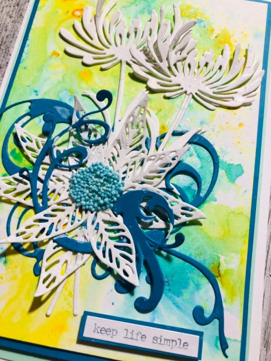Hello my friends! Today I wanted to combine some of Tim Holtz difference Thinlits together. So I die cut some Wildflowers, Adorneds and Skeleton leaves. And this is what I came up with and I hope you guys like it. I’ll list all products I used down below.