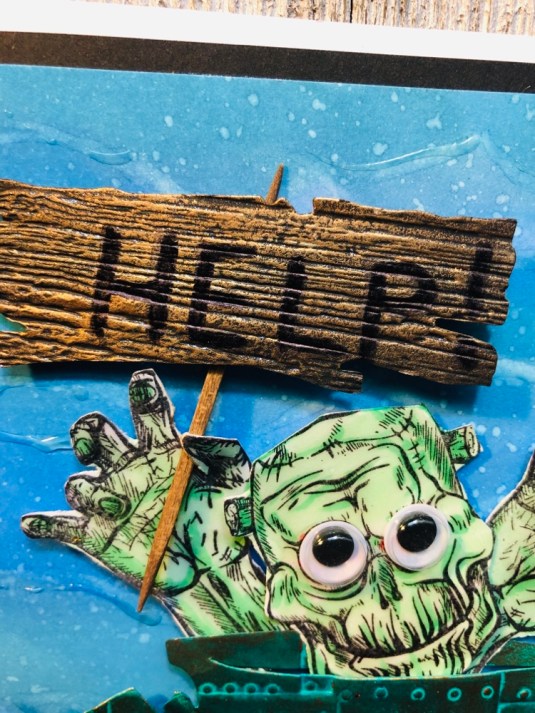Tim Holtz Distress Oxide Mermaid Lagoon, broken China, blueprint sketch and salty ocean