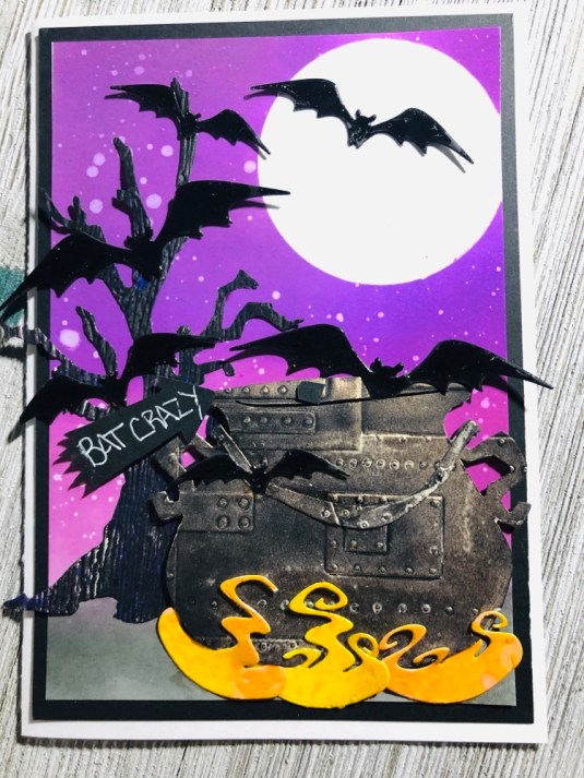 The rest of the products I used are: Tim Holtz Bat Crazy and Fireside Thinlits