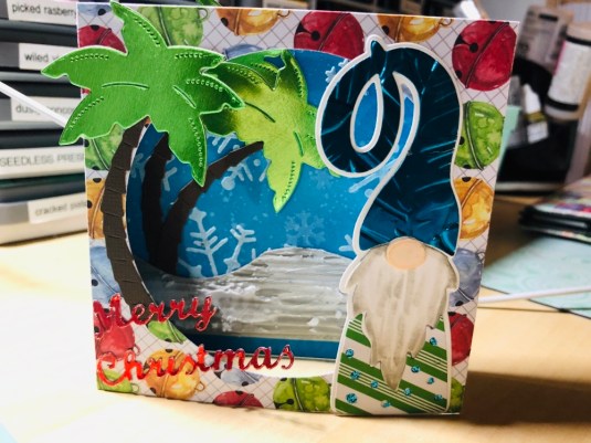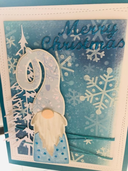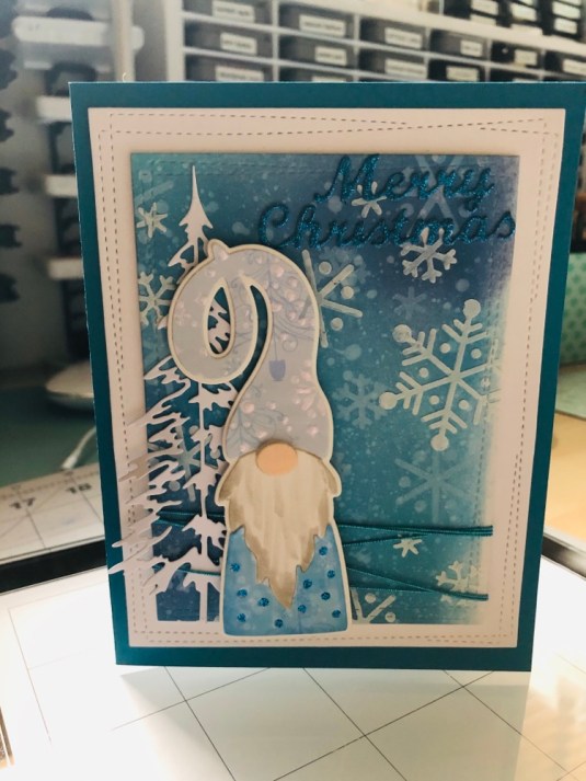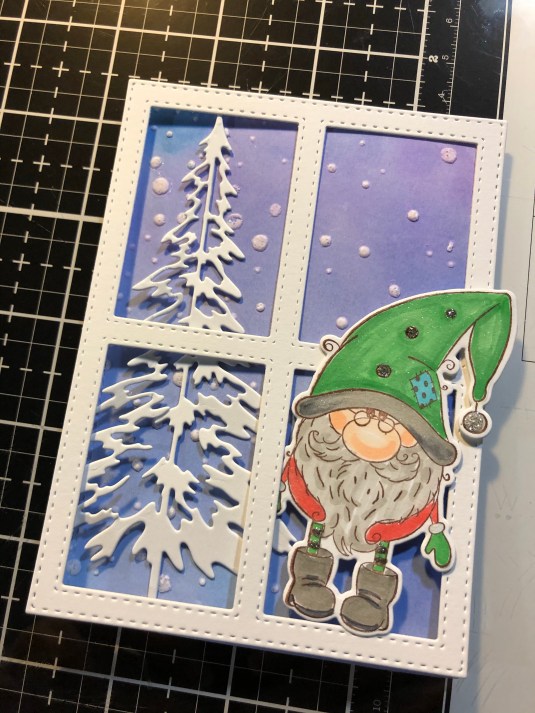 Hello my friends! This year I wanted to make some of my Christmas cards with Gnomes, so here’s one I already did with my Distress Oxide. I’ll list the products I used down below. I hope you guys try this background technique with your Christams cards.