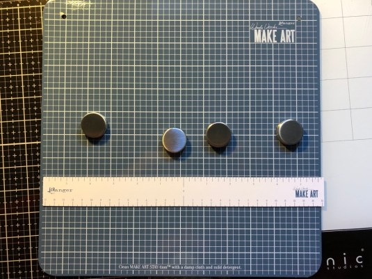 Make Art Stay-Tion came with 1- 12″x12″ steel magnetic base with printed grid, 4- brushed aluminum magnets and a magnetic centering ruler.