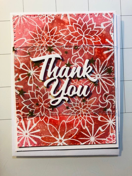 Hello my crafty friends! Yesterday I was with a group of awesome crafty girls. We meet once a month and share awesome crafty ideas. I Just received the New Simon Says background stamp in the mail. So I wanted to share it with my crafty friends. Hope you like it and try this technique at home. I’ll list product’s down bellow that I used. But whatever you have in your stash use it.