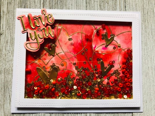 Others products I used are Tim Holtz New Falling Hearts Thinlits 664415, his Kraft-stock Metallic Gold and Ranger Super Fine Detail Embossing powder Gold. I’m so much a fan of all Tim Holtz products.