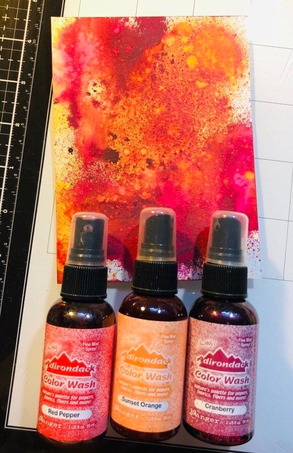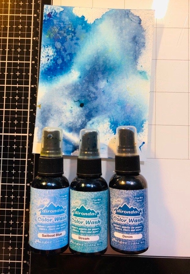 Hi my crafty friends! I decided today to get out my stash of Tim Holtz Adirondack color wash sprays, create some backgrounds for future cards. Hope you like the combination of colors that I picked for the backgrounds. I’ll list all the colors down below.