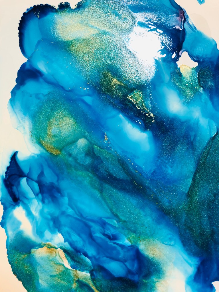 Backgrounds are done with Tim Holtz distress oxides sprays cracked pistachio, mermaid lagoon, salty ocean and hickory smoke.