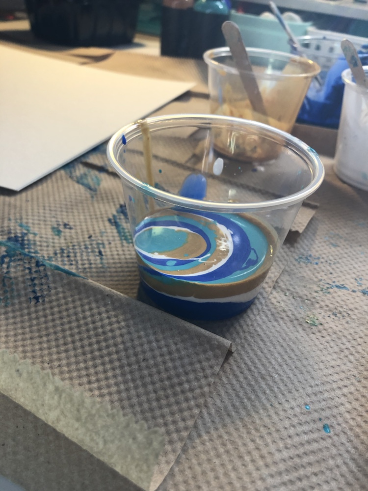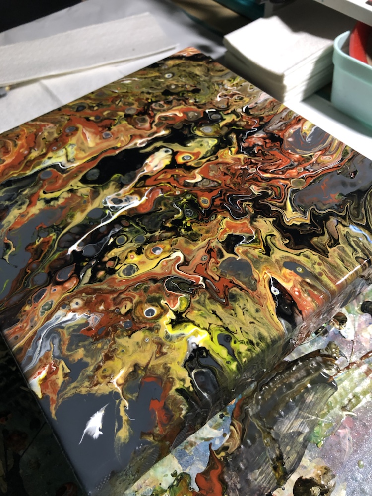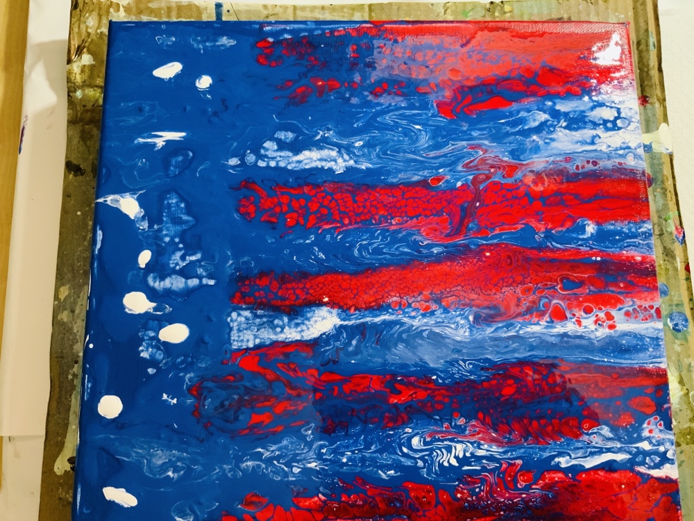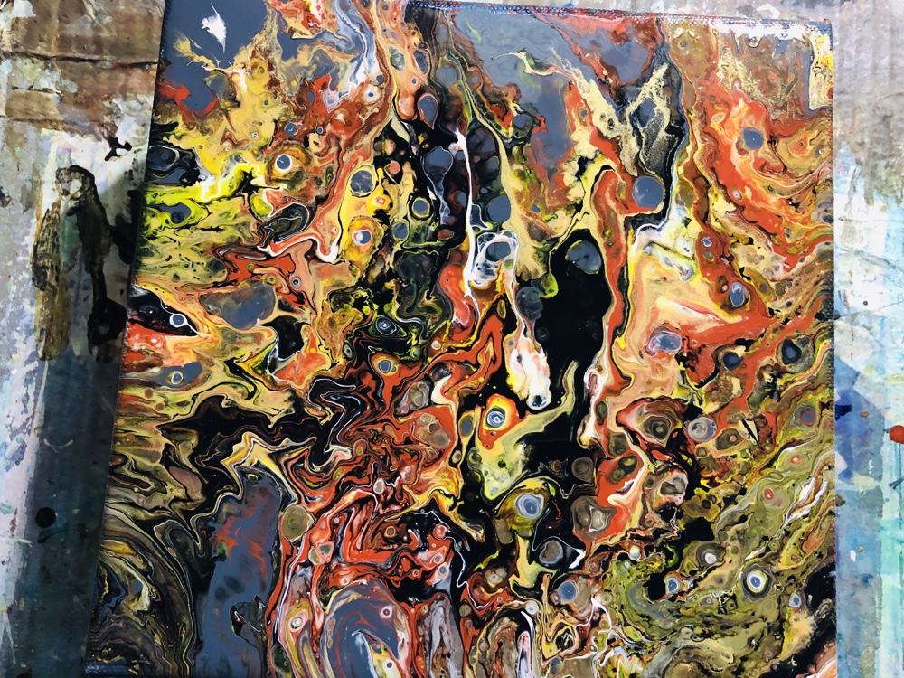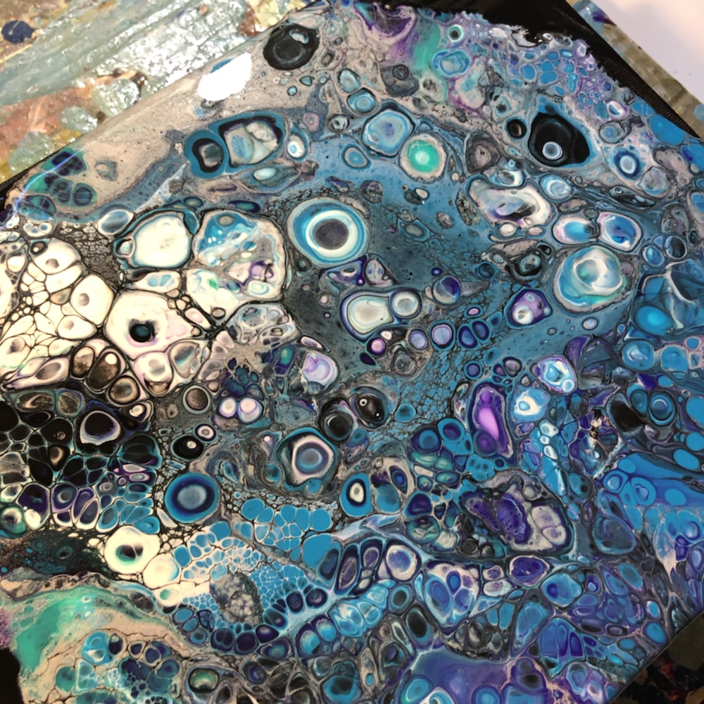 As you know when you do a acrylic pouring each piece is different. Sometimes you can see a lot cells and sometimes only a few. I also notices sometime I don’t always see one or two colors I pour. But now I’m pretty sure I got the hang of it. Just pour a little bit of each color repeatedly in your cup.
