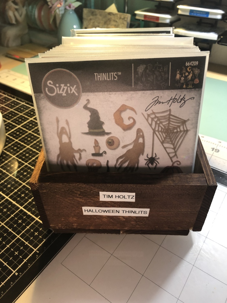Hello my crafty friends! Hope everyone is waking up to a beautiful morning. I woke up this morning thinking how can I organize my Tim Holtz Halloween thinlits. I remember I had this old wooden box that my father made me when he was working for a lumber company. So I went into my craft room and got busy.
