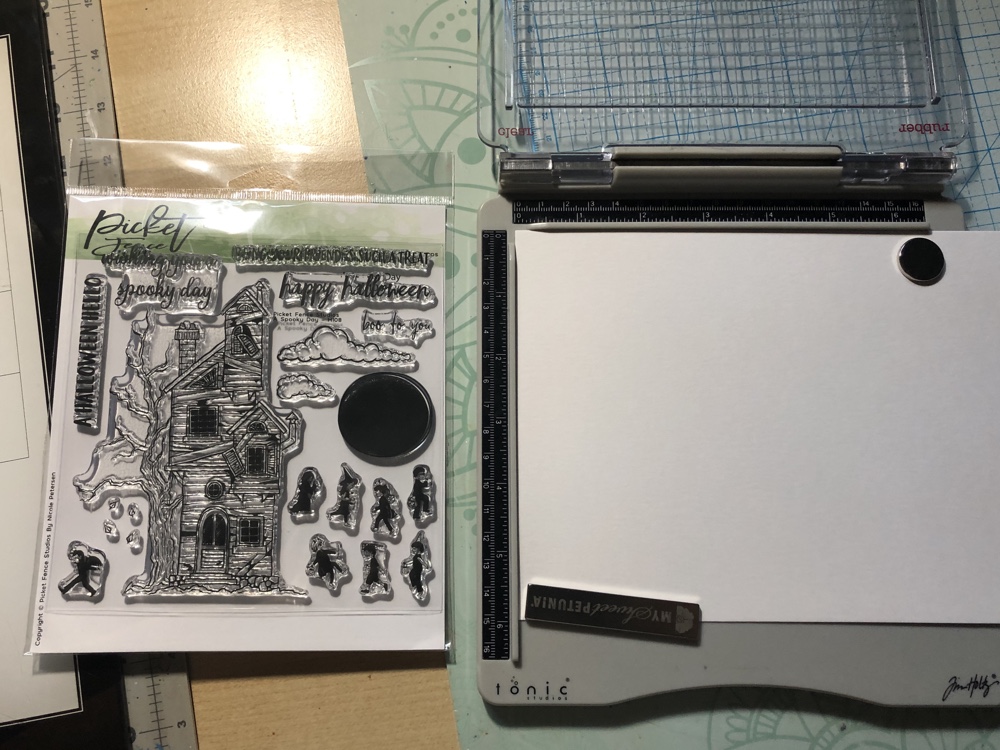 Hello my crafty friends! Hoping everyone is having a wonderful day. For the passed three days I have been working on Halloween cards. The stamp I chooses is called A Spooky Day made by Picket Fence Studios. I fell in love with it, because I saw another card made by this stamp, I’m pretty sure it was on their blog. So thank you Picket Fence for making and sharing a cute card and to the creator. I love when I get inspired by others. I did change a couple of thing and add some to the cards. I will list all products I used down bellow.