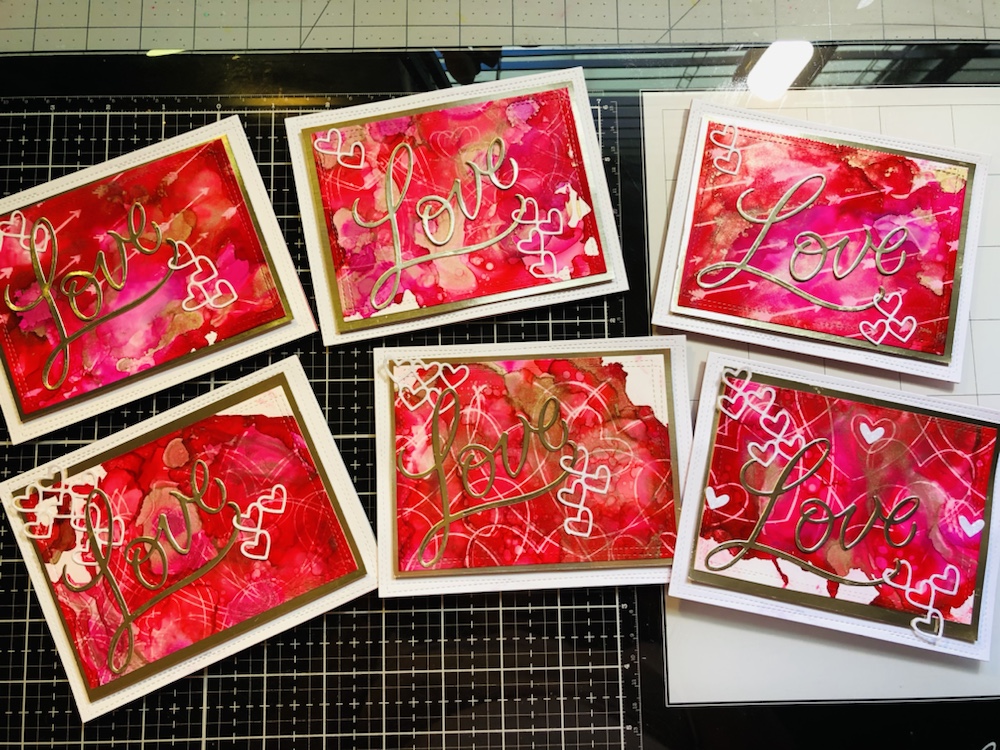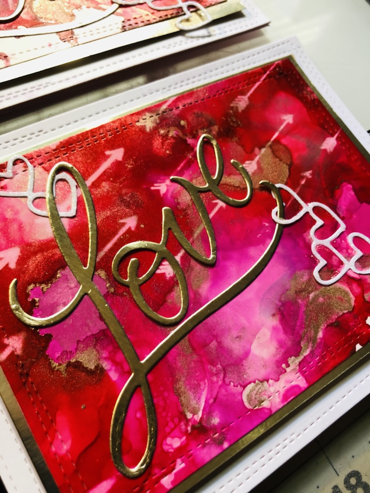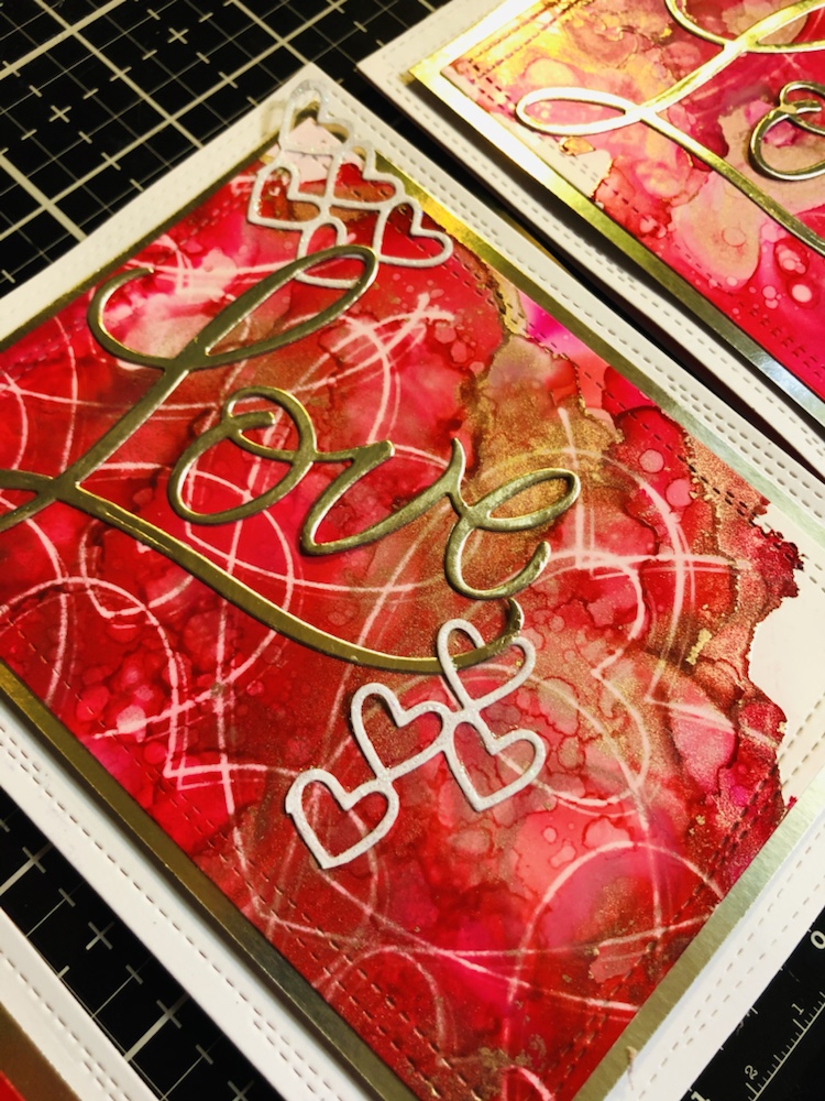 Hello my crafty friends! Just a quick handmade Valentines cards made with using Tim Holtz alcohol inks and other products, I’ll list down below.