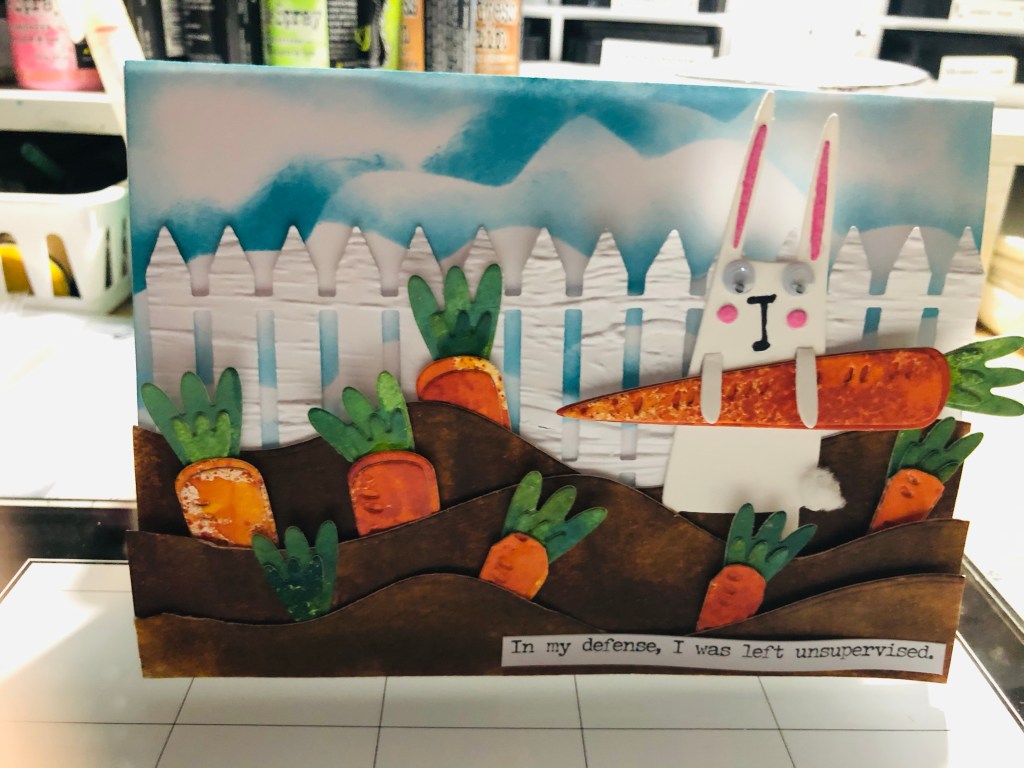 Hello my craft friends! Just a quick-easy fun little card to make with tim holtz carrot bunny thinlit die’s # 665213.