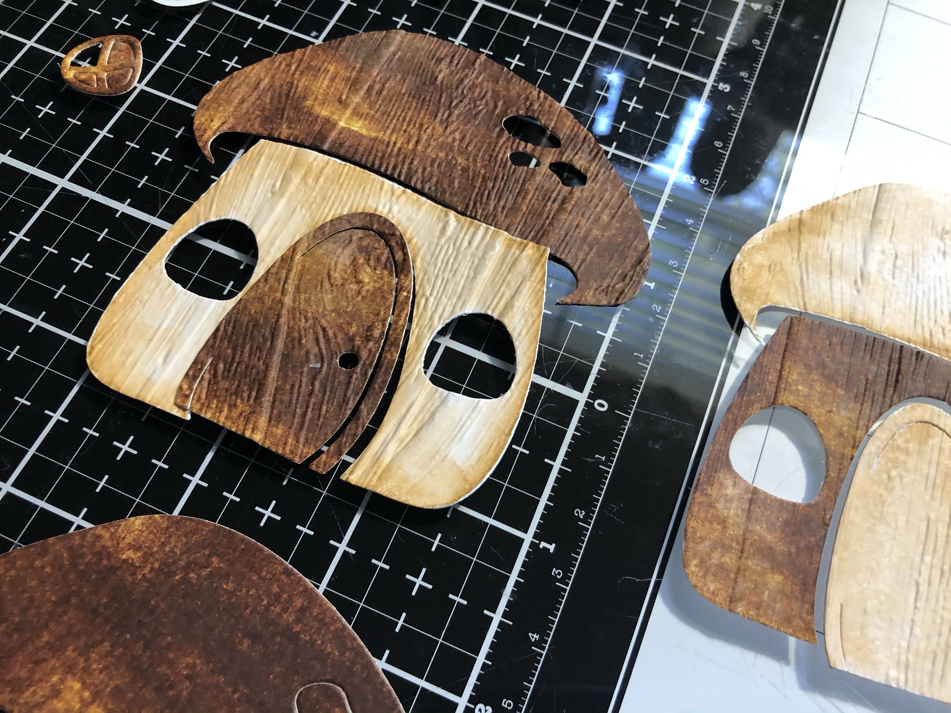 I used Simon says stamps Gnome Home die. Tim holtz distress stain walnut, vintage photo and 3-d texture fade Lumber.
