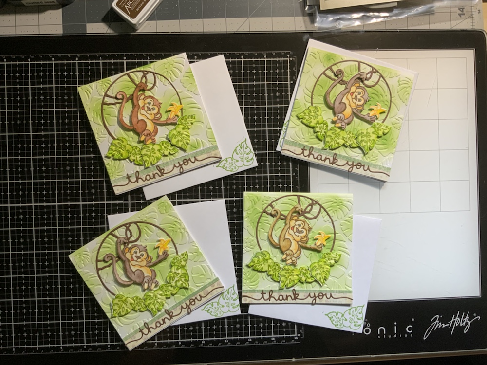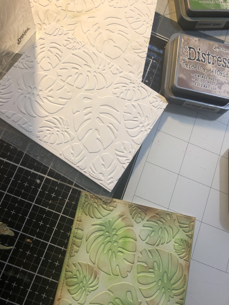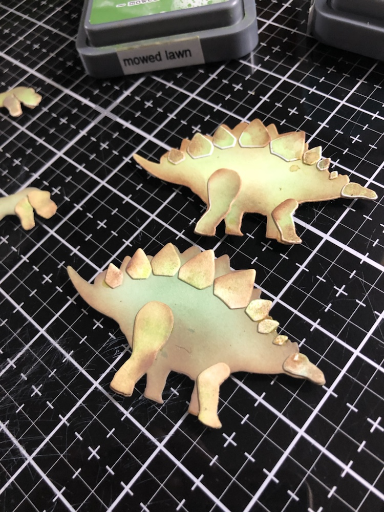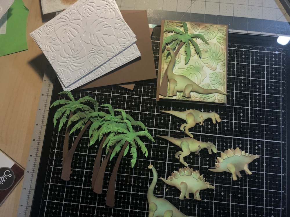 Hello my crafty friends! I had these Tim Holtz prehistoric Thinlits for awhile and I decided to create something with them for my granddaughter. I actually create more cards for her and I’ll post them during the weeks coming up. I really like the way the cards came out. I’ll list the products below.