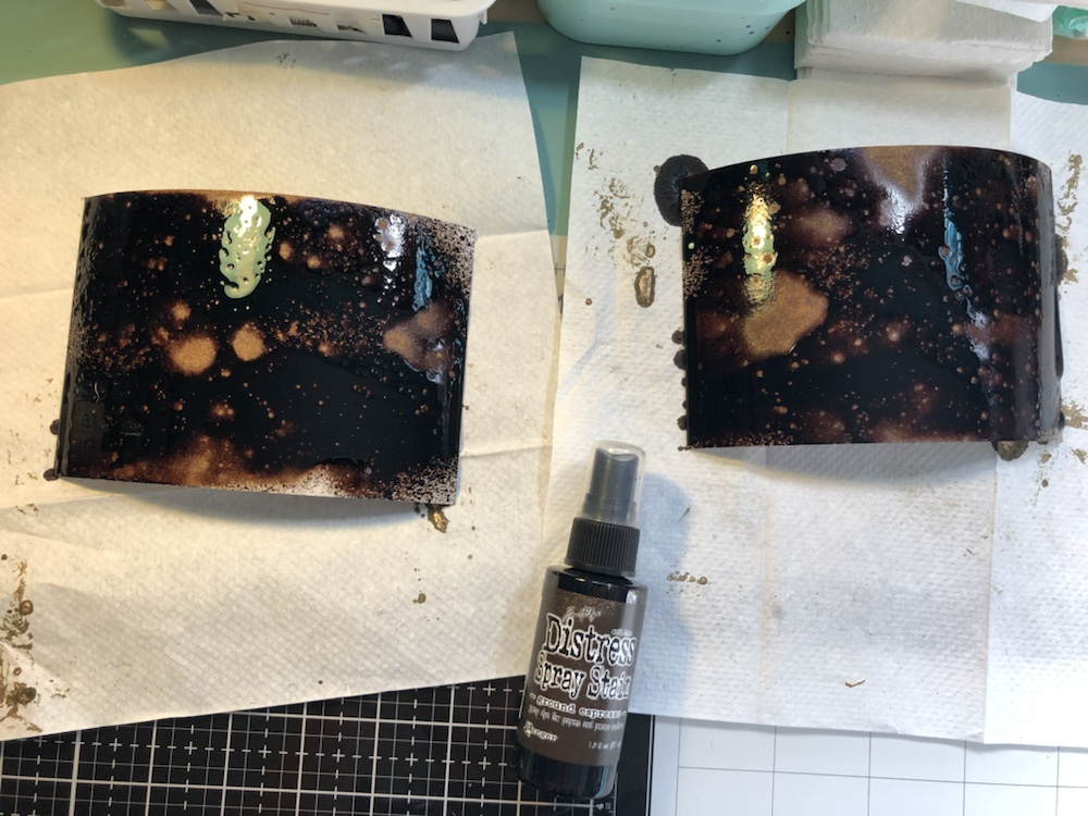 Hello my crafty friends! Today I wanted to share with you guys the new Tim Holtz distress mica stains the Halloween and Christmas line. When I received my order I had to jump right in, create and play with theses beautiful colors. I list everything down bellow.