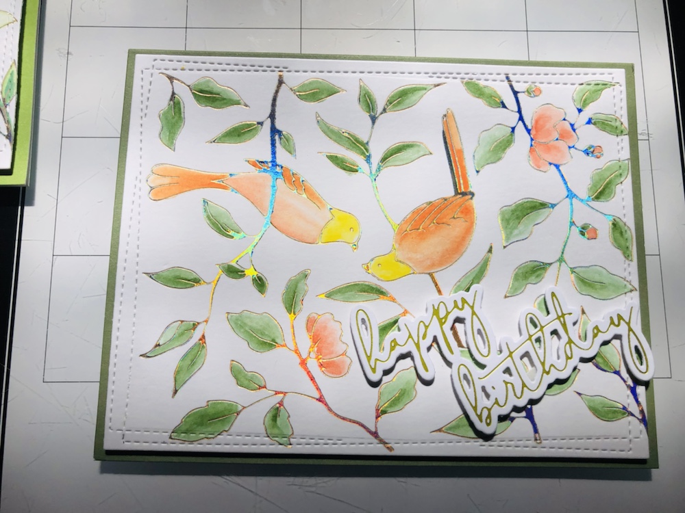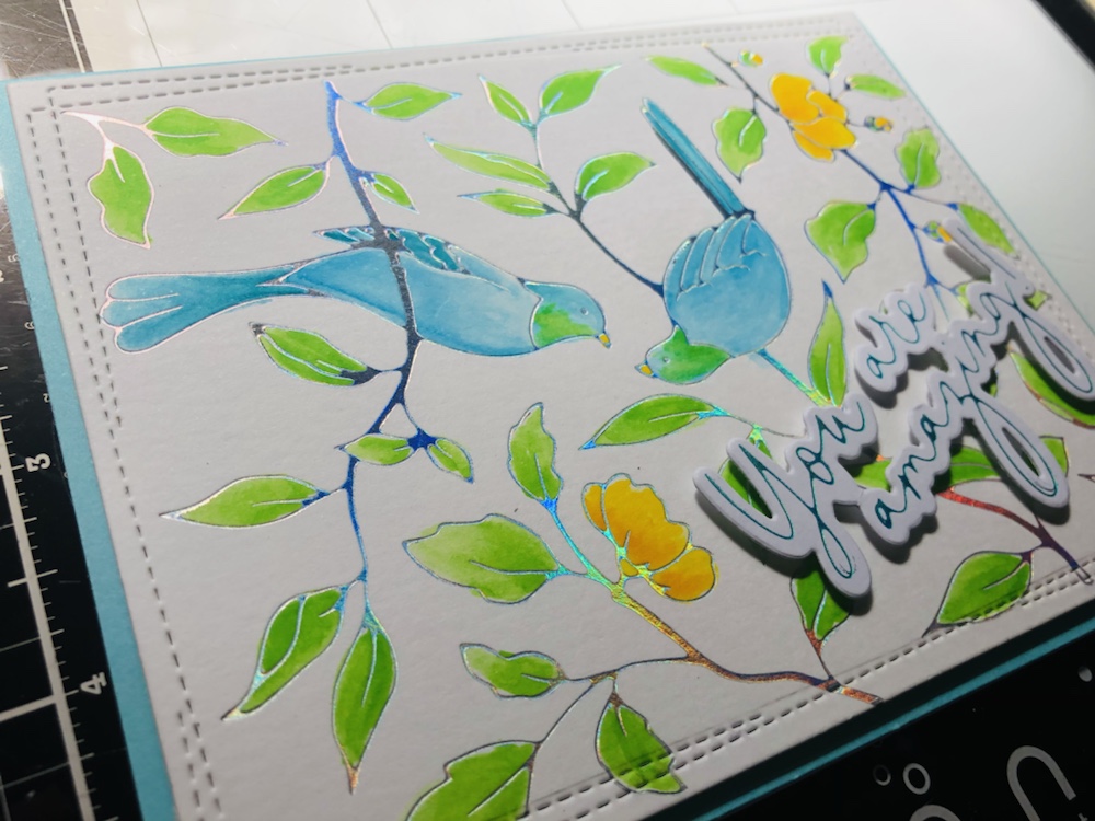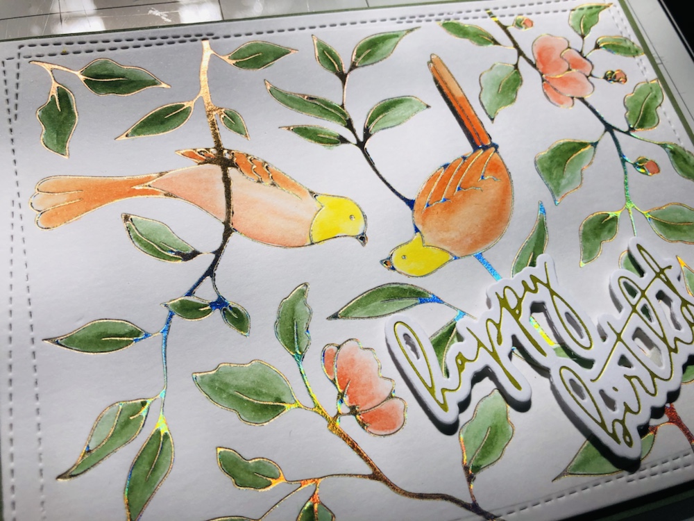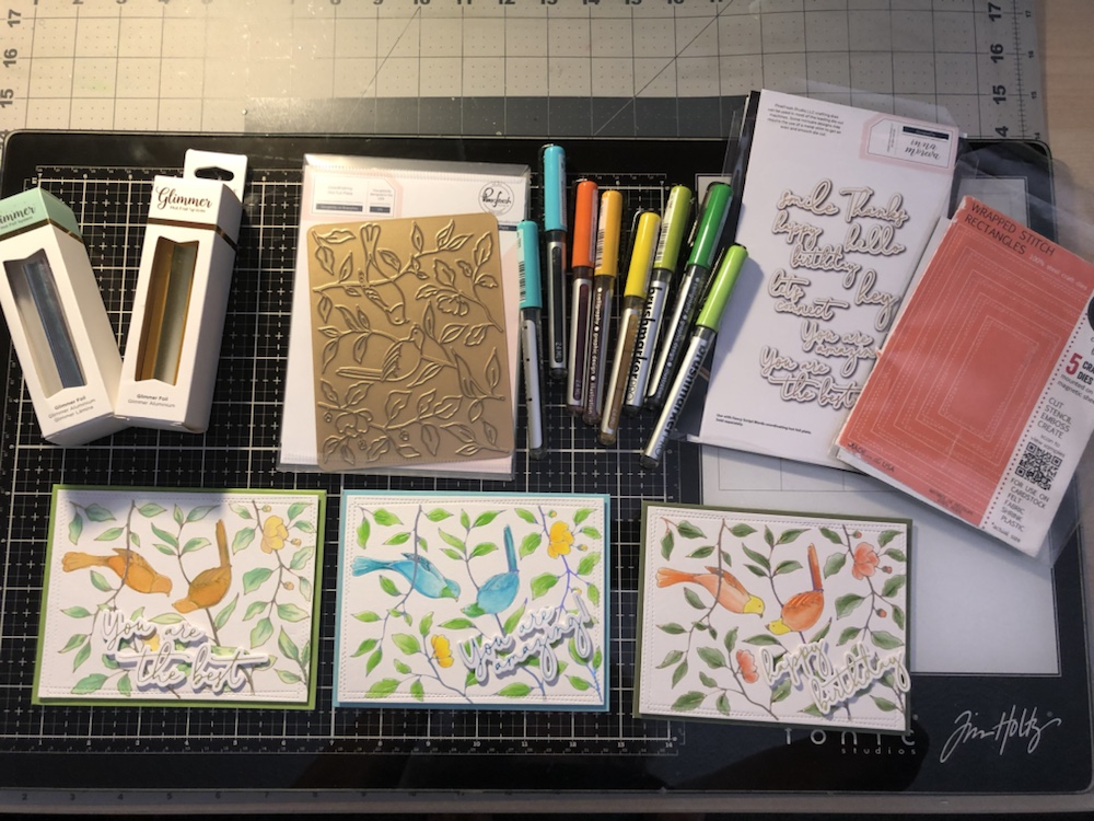 Hello my crafty friends! I waned share a few cards I made using Pinkfresh Studio Glimmer plate called Songbirds on Branches. I had so much fun creating these cards. I’ll list everything I used down below.