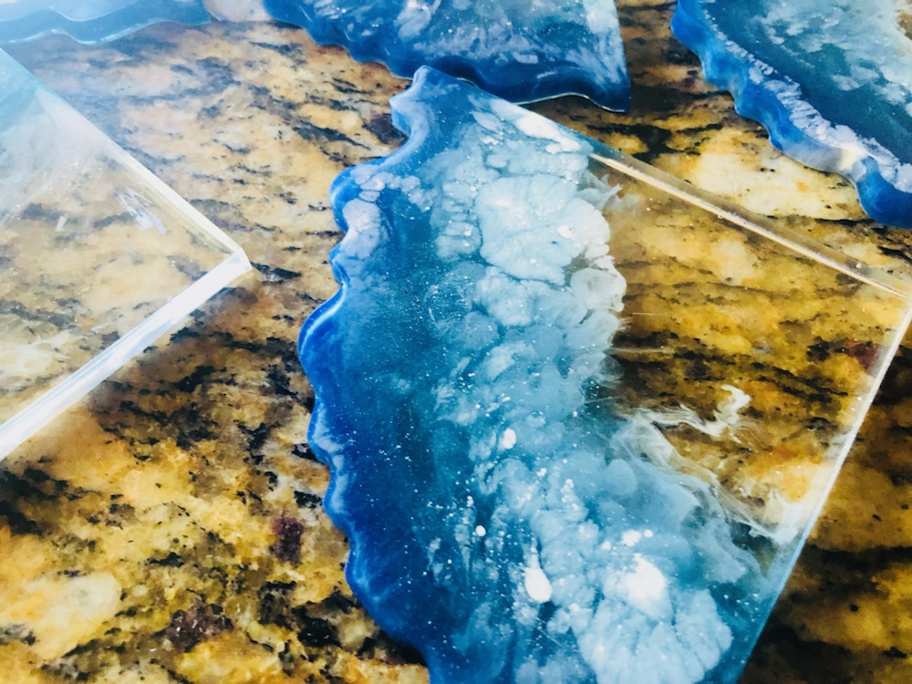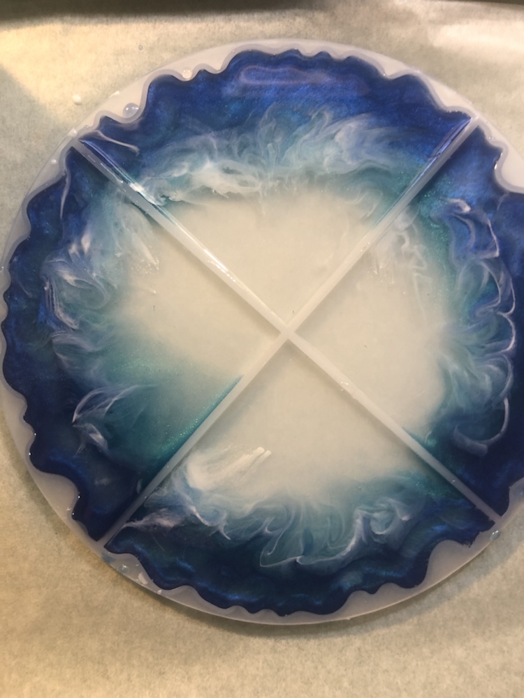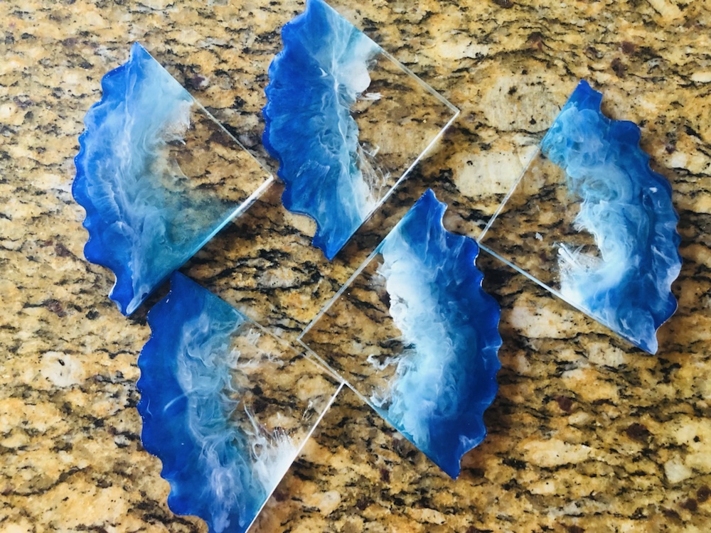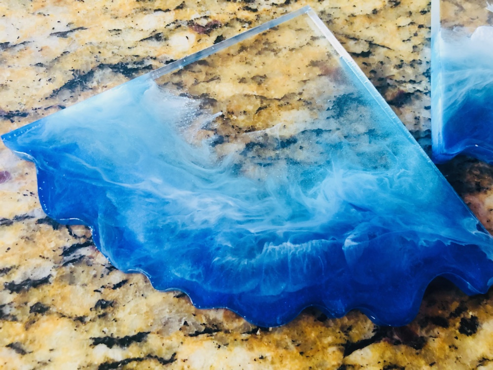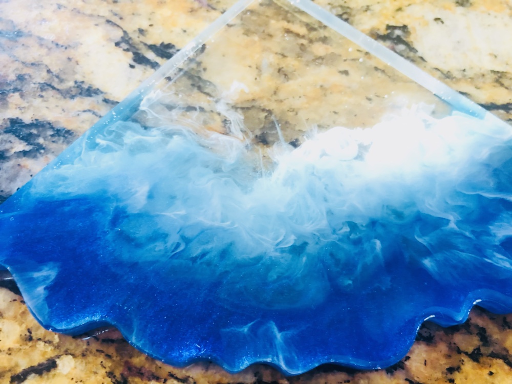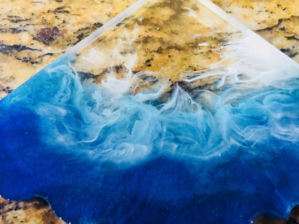 Hello my crafty friends! I just took them out of there molds. And I like the way they came out. Plus I love the look of the waves are crashing like the ocean. Colors I pick are beautiful and stunning. I’m so happy they came out perfect. Now I’m going to do some around, Square and Geo Coasters like the ocean waves again. Here’s some pictures of my ocean wave coasters.