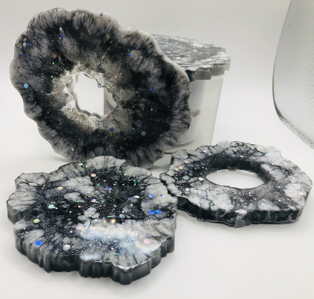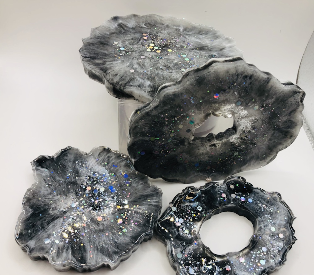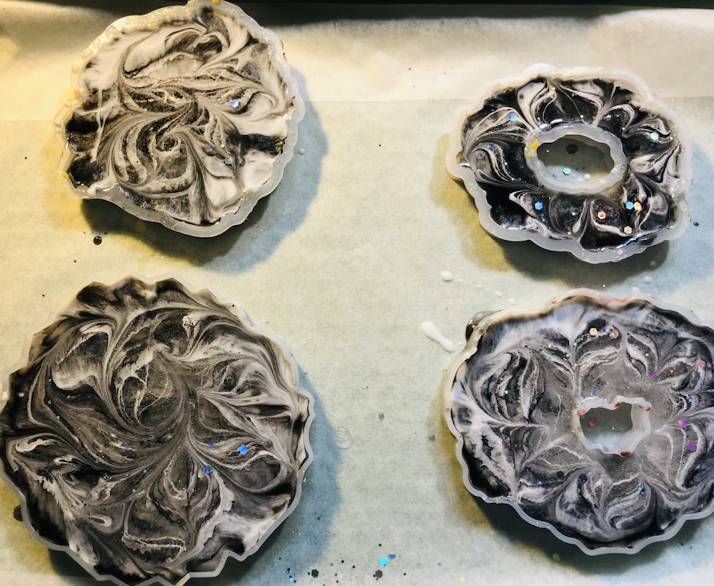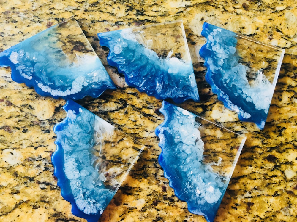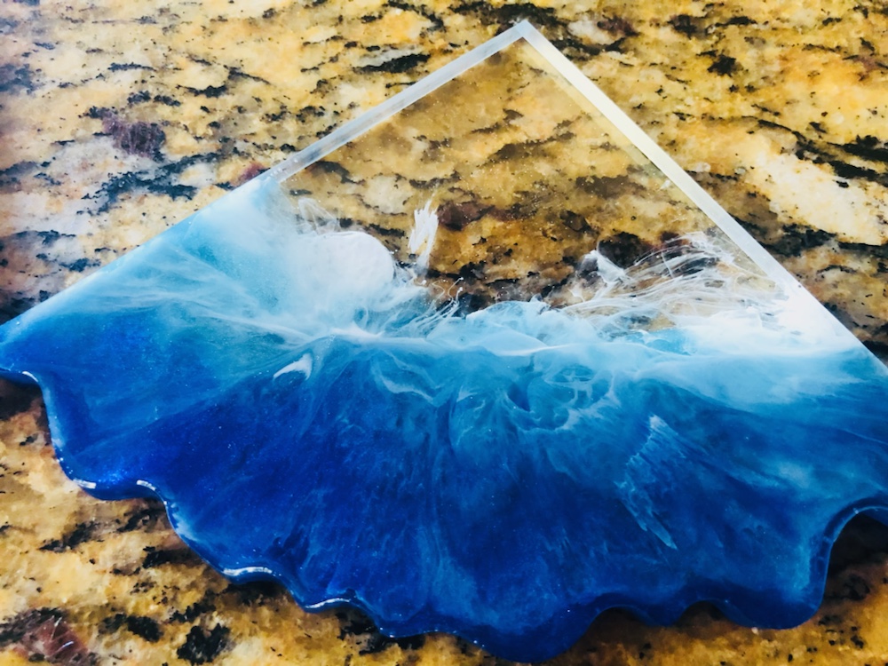 Hello my crafty friends! I just took them out of there molds. And I like the way they came out. Plus I love the look of the waves are crashing like the ocean. Colors I pick are beautiful and stunning. I’m so happy they came out perfect. Now I’m going to do some around, Square and Geo Coasters like the ocean waves again. Here’s some pictures of my ocean wave coasters.