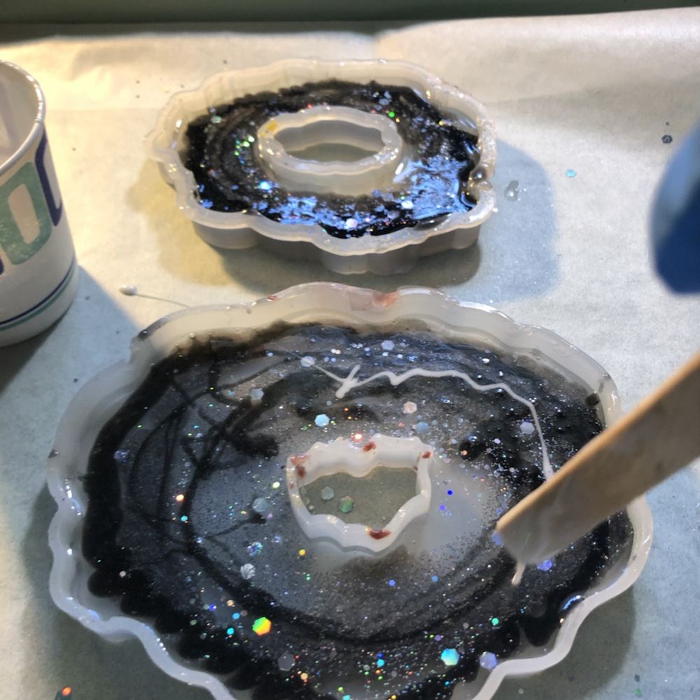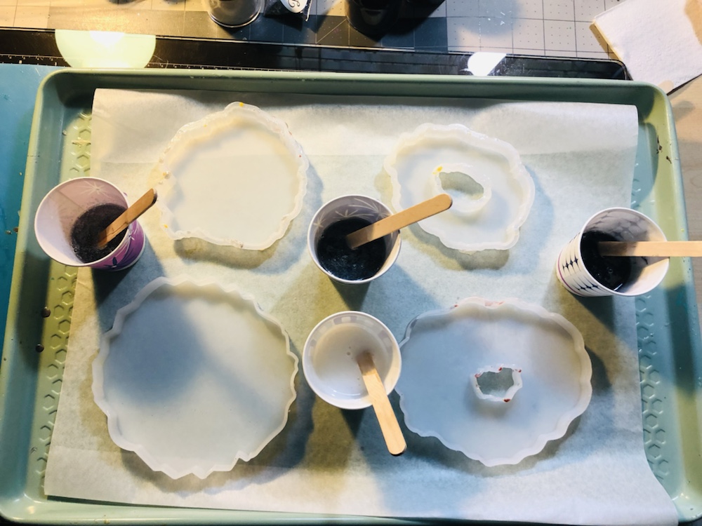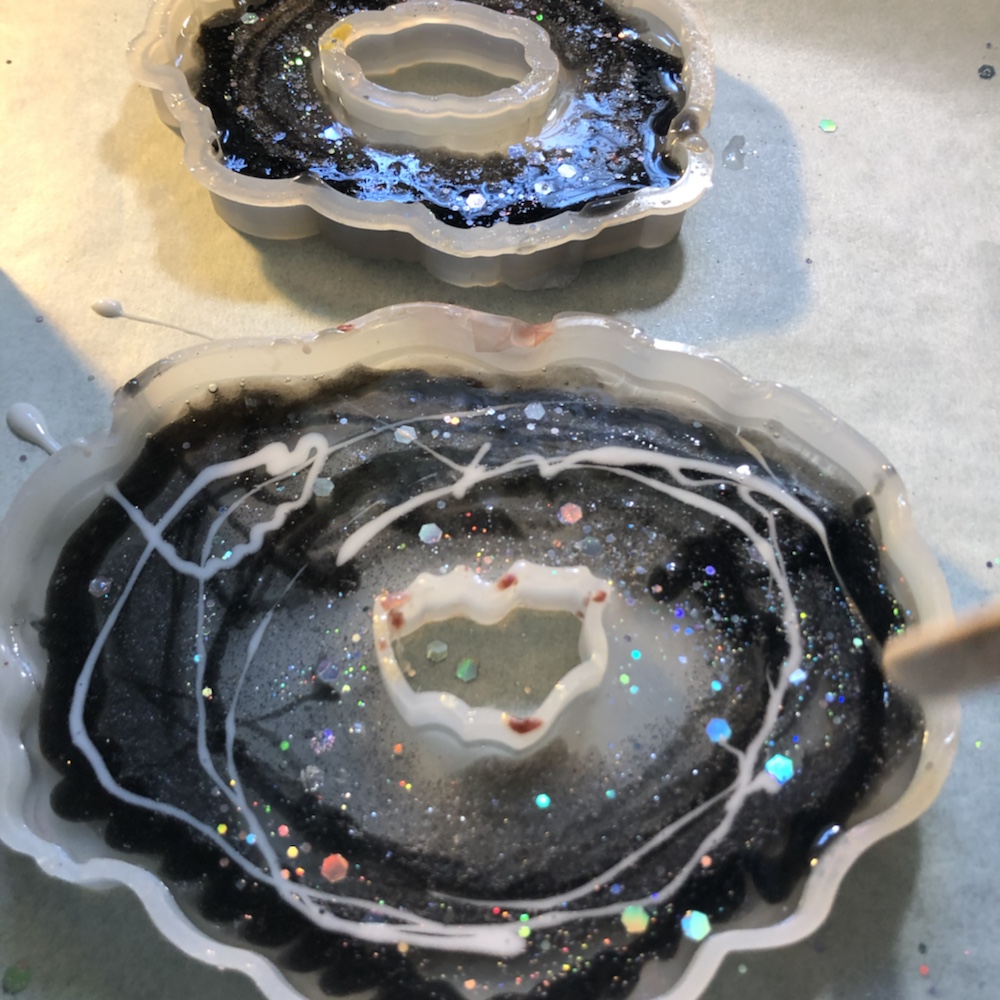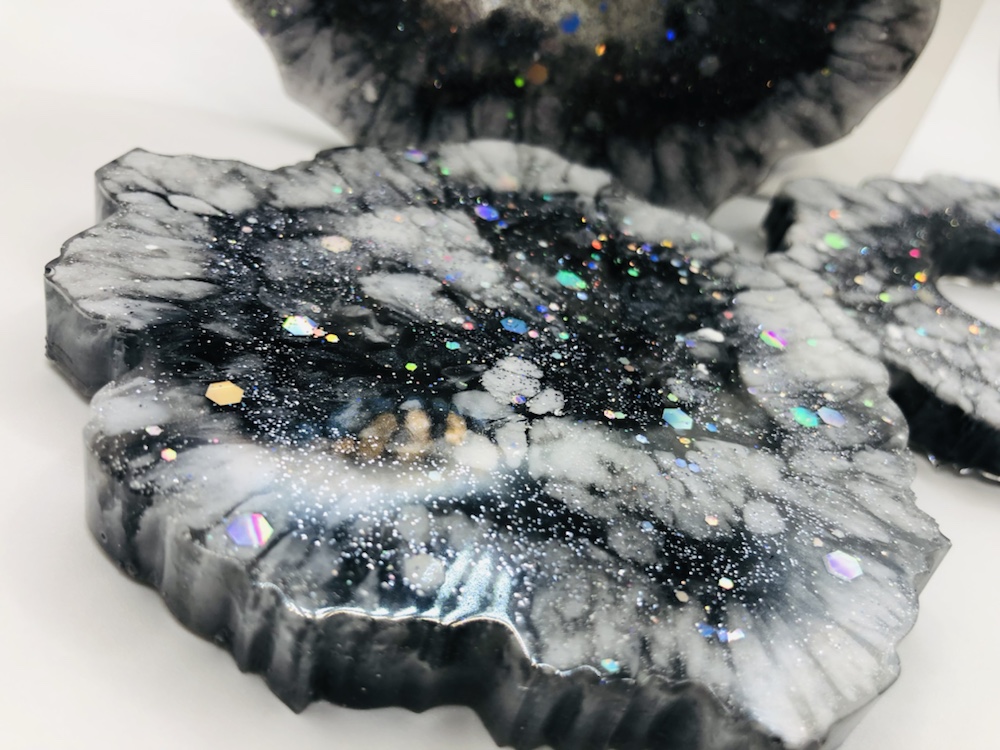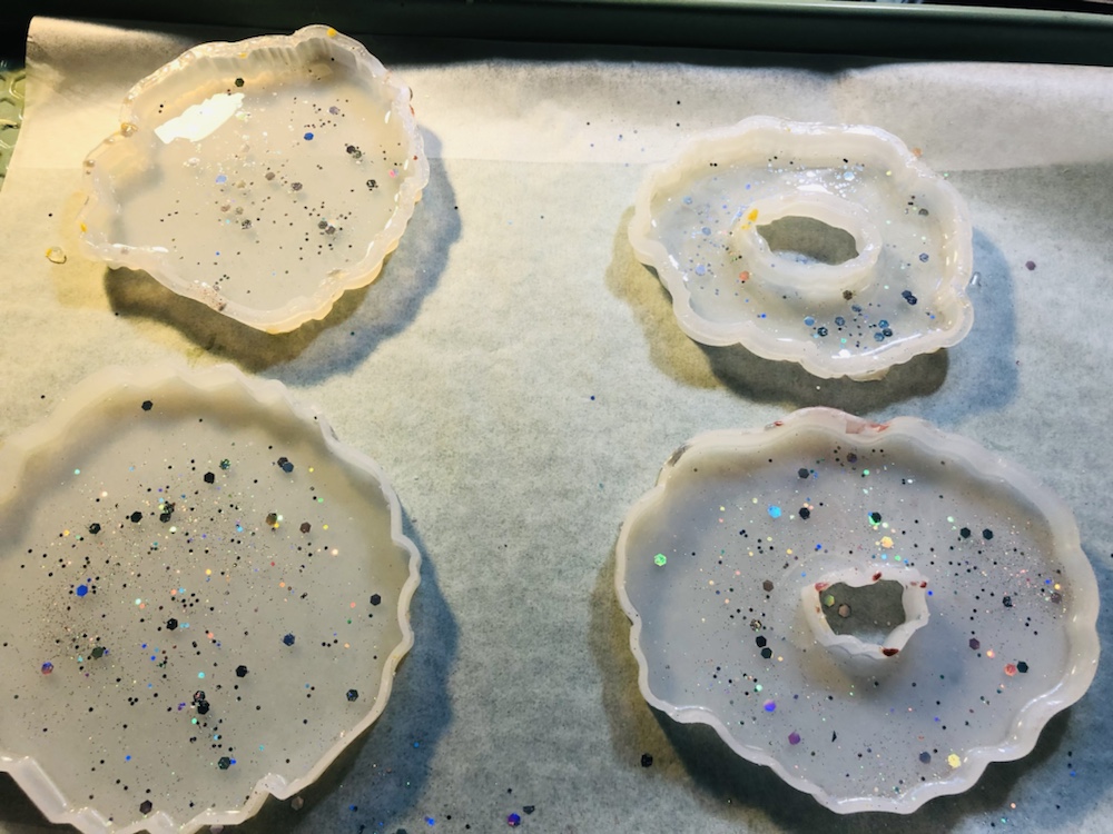 Hello my crafty friends! I just took them out of there molds. And I like the way they came out. Plus I love the look of the waves are crashing like the ocean. Colors I pick are beautiful and stunning. I’m so happy they came out perfect. Now I’m going to do some around, Square and Geo Coasters like the ocean waves again. Here’s some pictures of my ocean wave coasters.