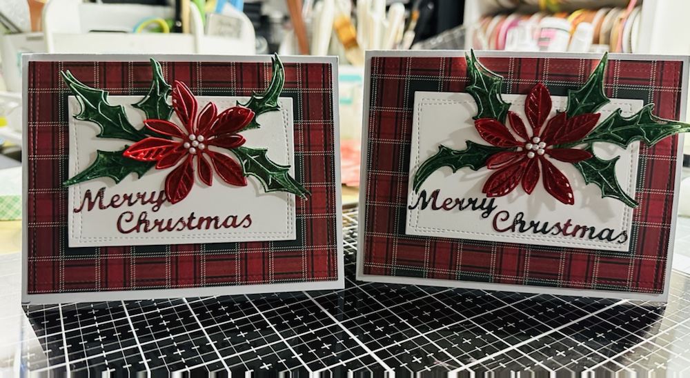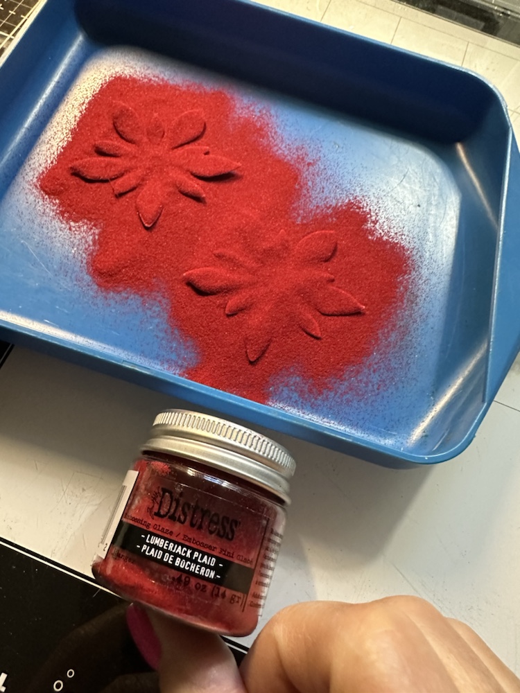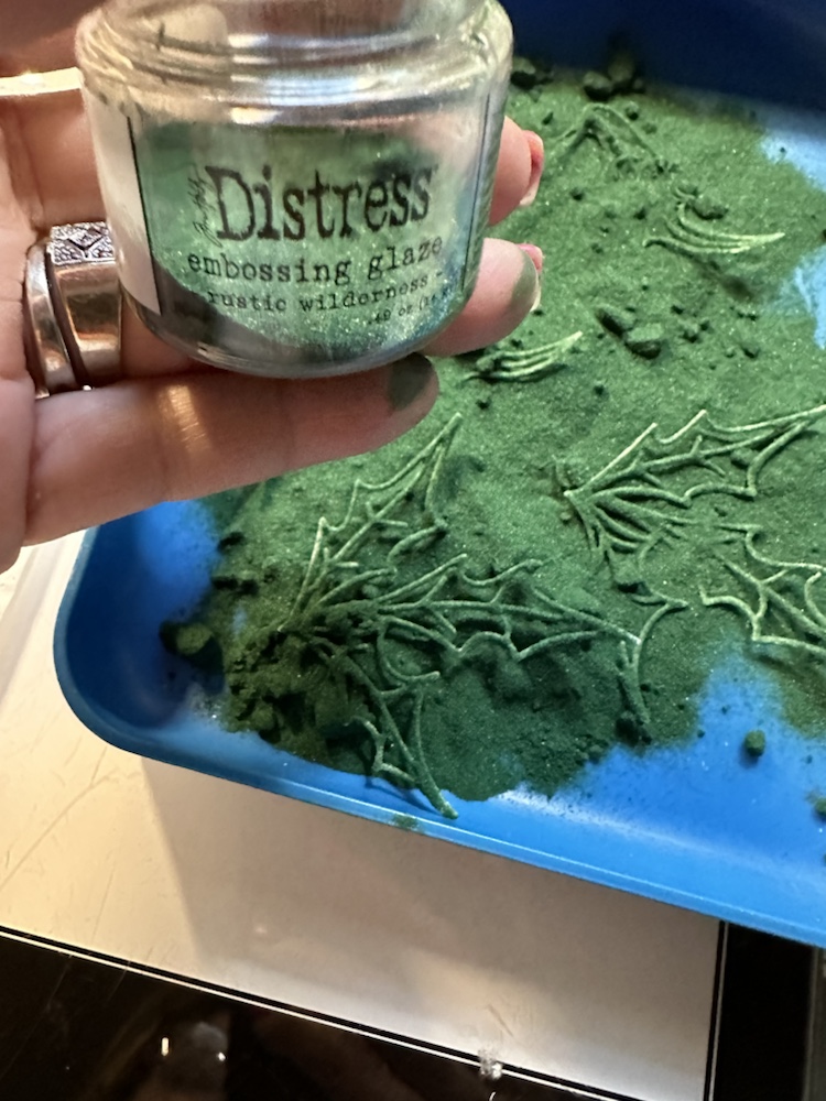 Hello my crafty friends! I wanted to share a set of Christmas cards. I made last week. Using Tim Holtz new distress oxides lumberjack plaid and rustic wilderness. Plus his new distress embossing glazes. I had so much funny making theses simple handmade cards. If you get a chance try this technique with your embossing glazes.