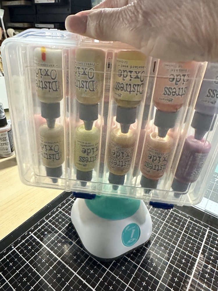 Hello crafty friends! Just a quick blog post. I purchased this Vortex Mixer for my Tim Holtz distress oxides, distress spray and acrylics paints. I have arthritis in my hands so shaking theses all time sucks. But now my paints get mix fast and I can get on with creating something awesome.