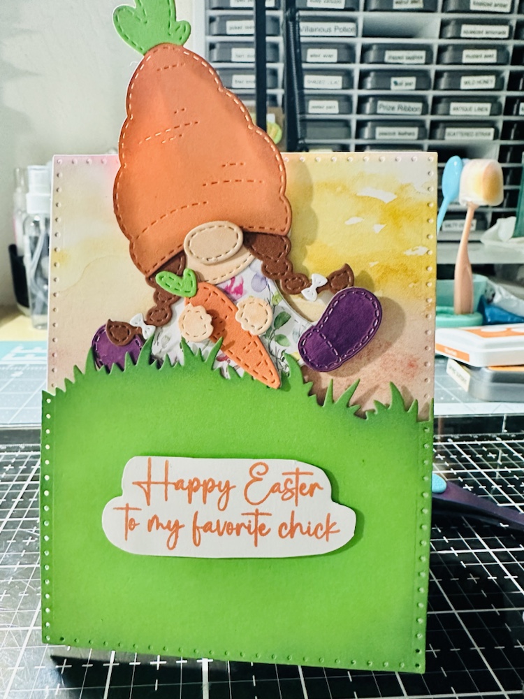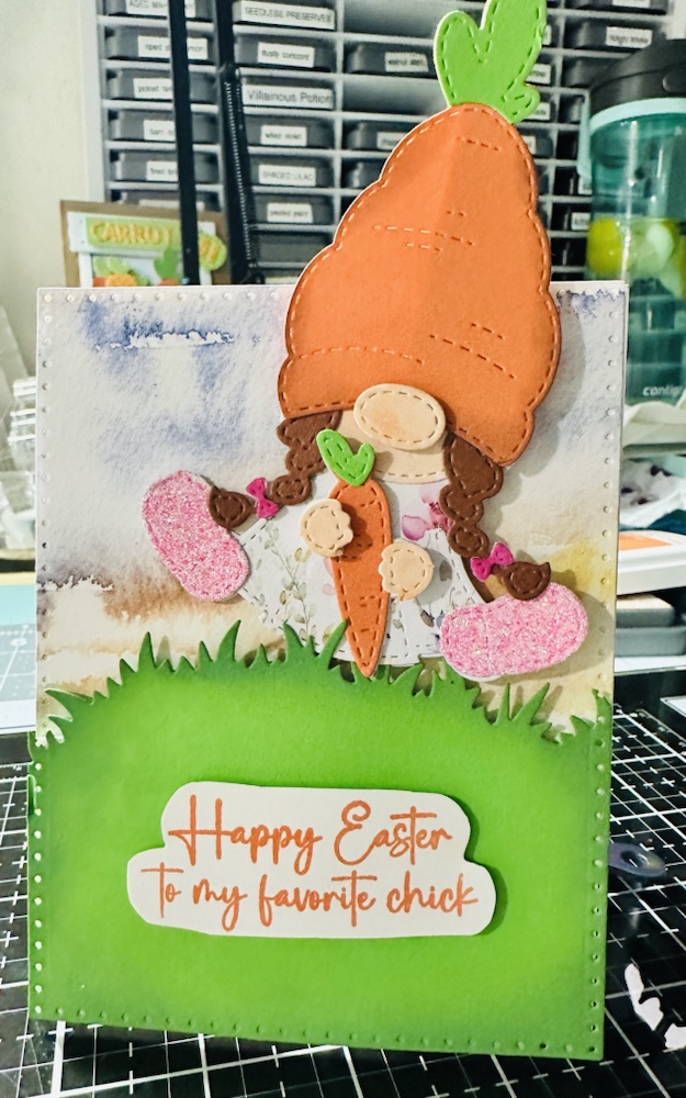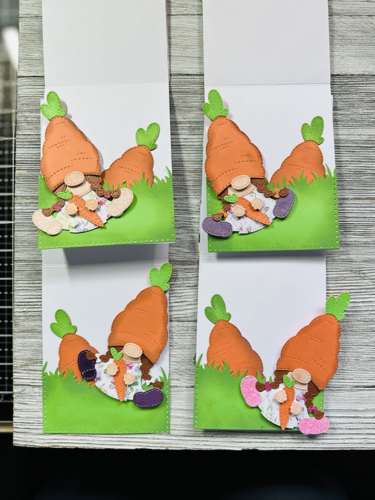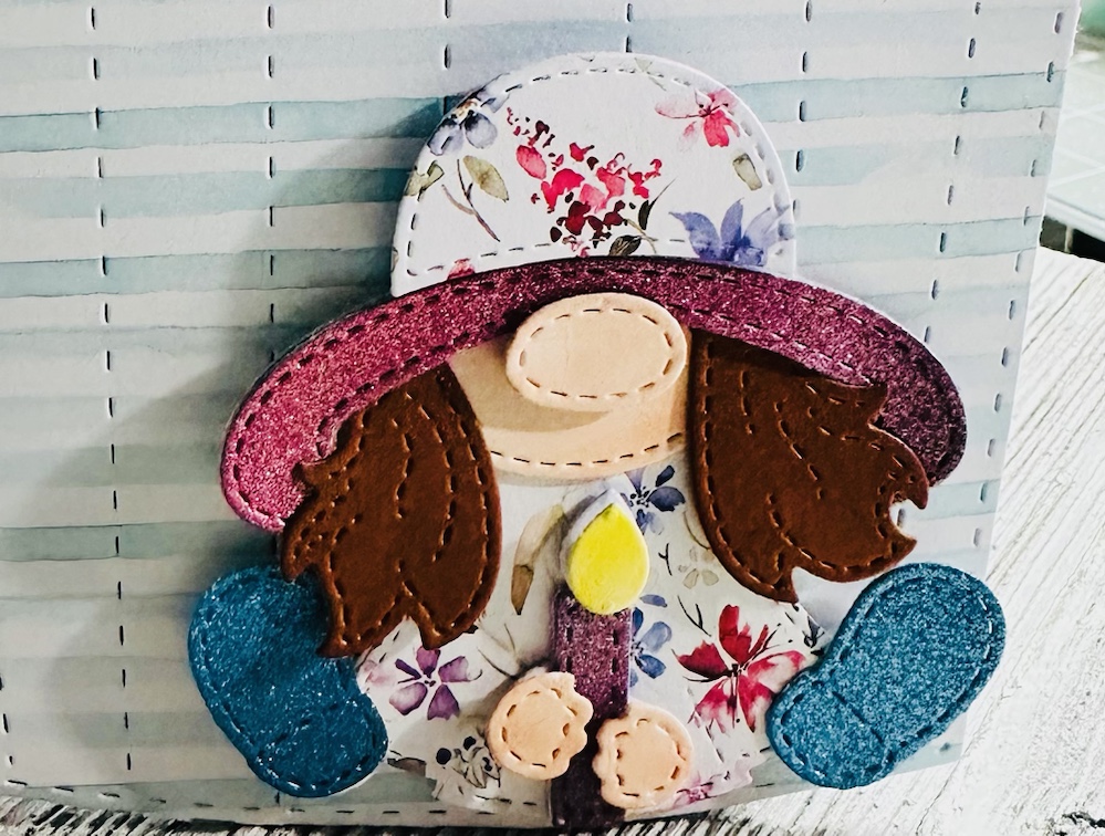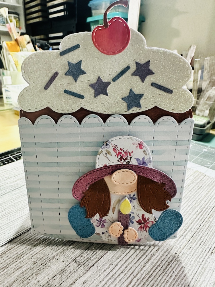 I used jaded blossom dies called cupcake slider die, girl gnome die, gnome dies: birthday add ones and spring add ons.
