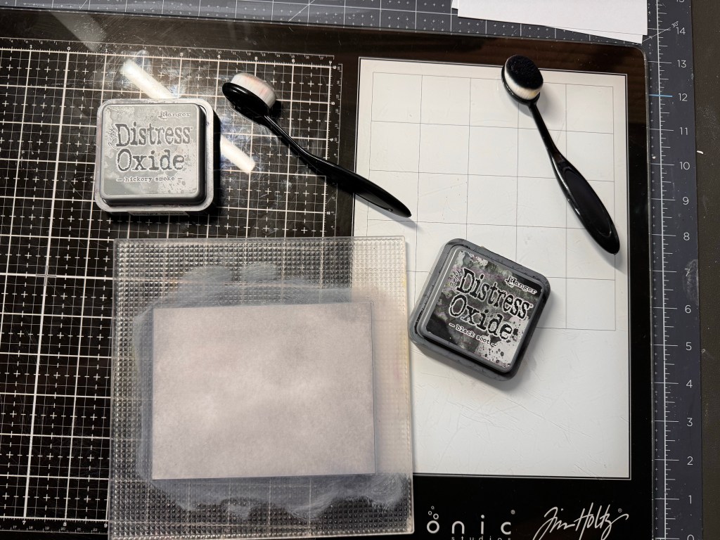 On the two at the end, I took distress oxide black soot and hickory smoke, which are also tim holtz products and covered a white card stock.