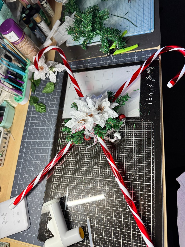 Hello crafty friend’s! Today I just wanted to share a simple candy cane decor, piece I made for my front door. I am planning to make more, but this is the first one I did and I just finished it and I wanted to share it with all of you guys.