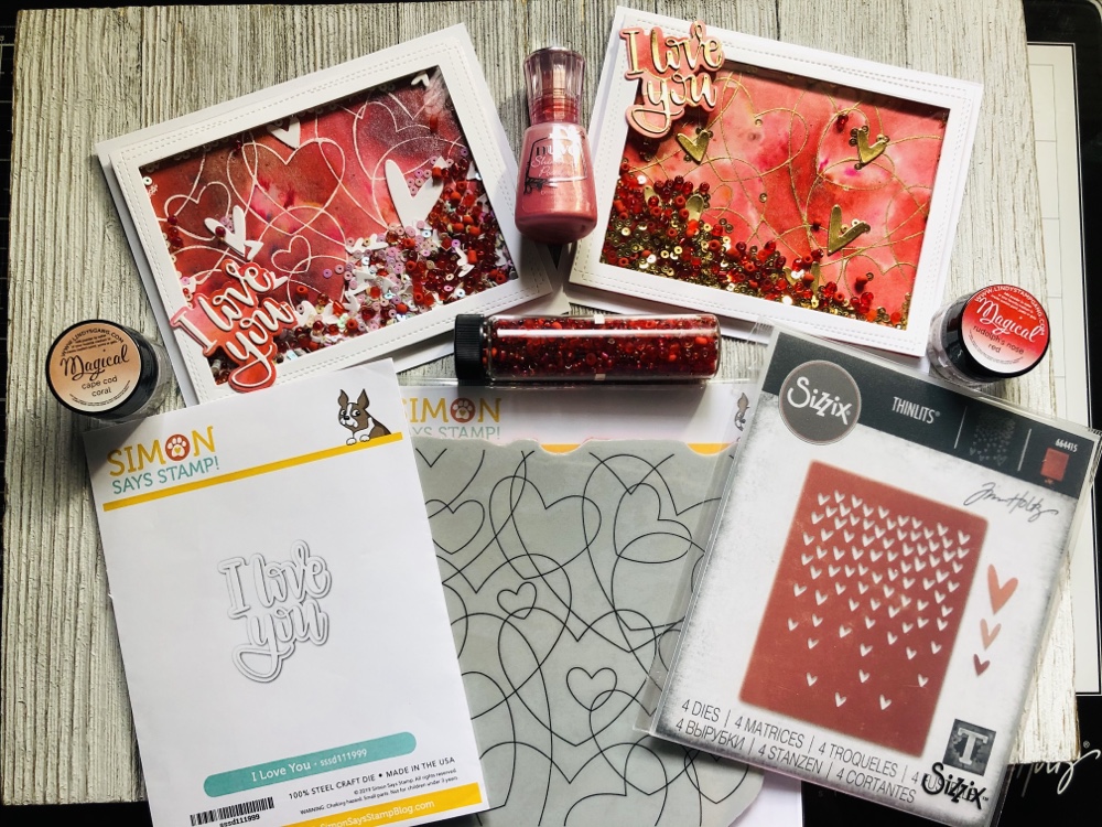 Simon Says Stamp! Heart To Heart Background # sss102095 6×6 Cliff stamp and I love you die set #sss111999. Simon Says Stamp! Is also one of my favorite company to order from they carry thier own projects and other that I’m just in love with.